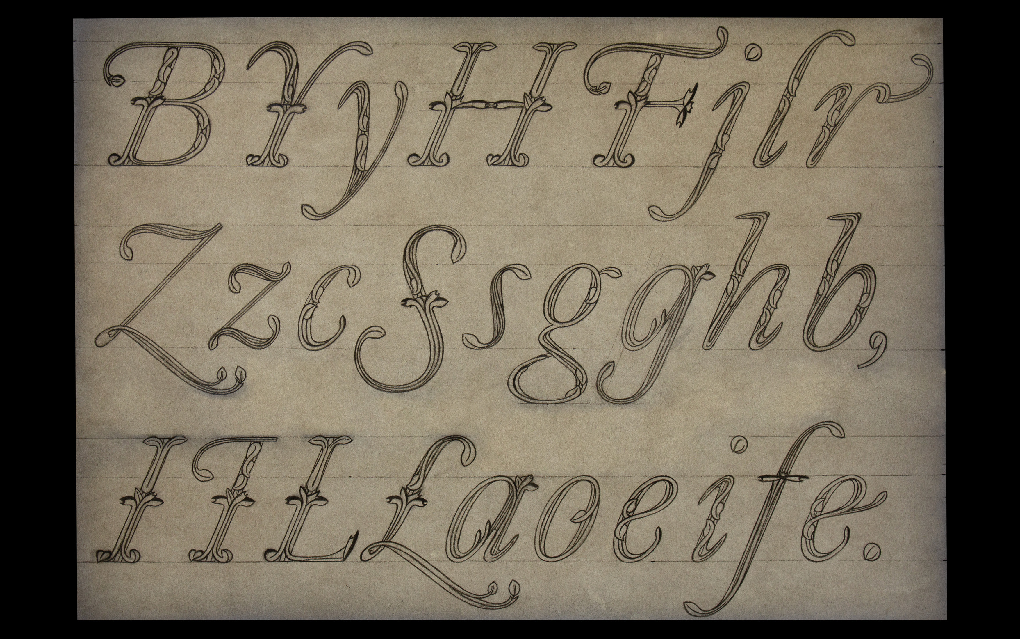 These sketches are based on lettering in the 16th century atlas ‘Theatre de l’univers’ by Abraham Ortelius.